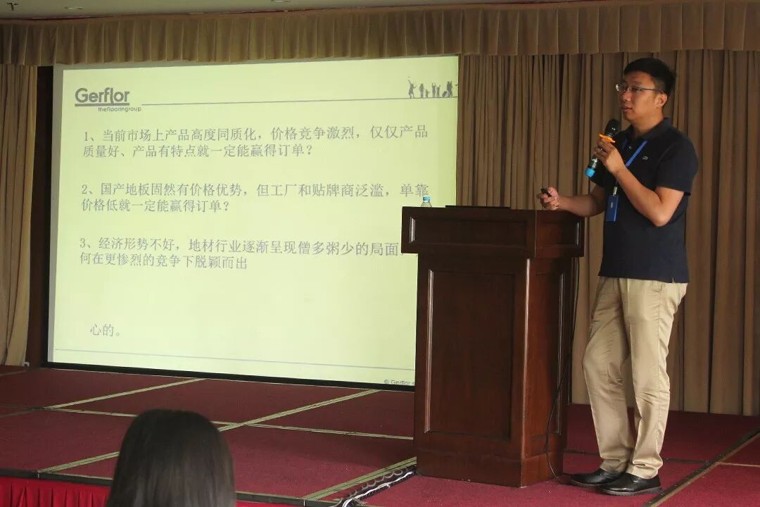 华北区商用地板销售经理王宏涛先生详尽介绍了洁福同透地板、复合地板及多种地面解决方案。